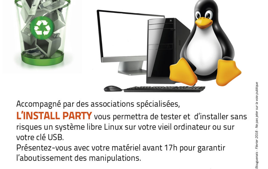 Partez à la découverte du réemploi de l’informatique, une animation de sensibilisation pour les juniors (à partir de 10 ans), au cybercentre de Bouguenais.   Accompagné par des associations spécialisées – Alis44, la Ressourcerie de l’île, Linux-Nantes – l’Install party permettra de tester et...